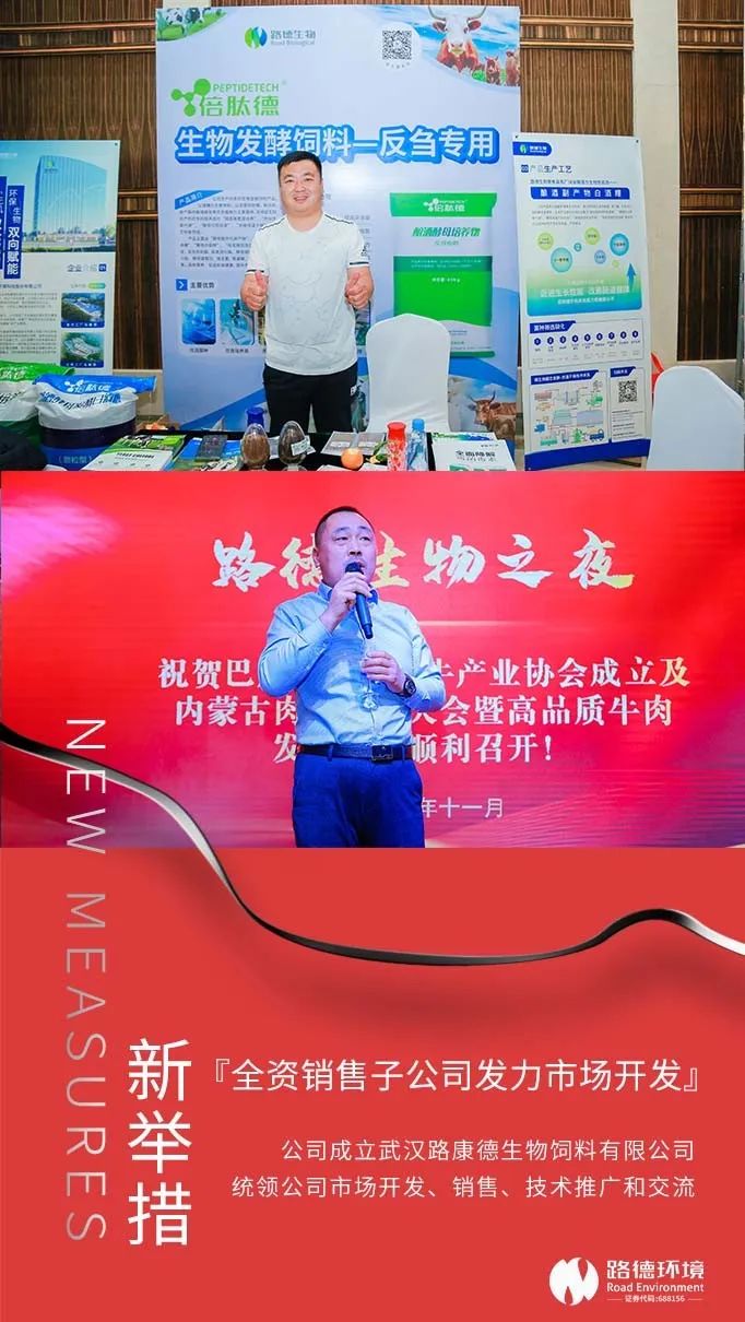 2023年,公司白酒糟生物發(fā)酵飼料產(chǎn)品先后亮相河北首屆唐羊文化節(jié)和內(nèi)蒙古肉牛產(chǎn)業(yè)大會,借力行業(yè)盛會,加強(qiáng)品牌建設(shè)和推廣,聚力市場開發(fā)。12月,公司成立全資銷售子公司——武漢路康德生物飼料有限公司,統(tǒng)領(lǐng)公司市場開發(fā)、產(chǎn)品銷售、生物技術(shù)推廣和交流。