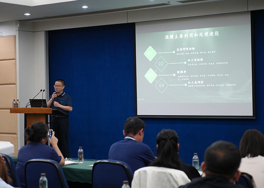 沈教授結(jié)合路德環(huán)境在白酒糟發(fā)酵飼料領(lǐng)域的研發(fā)、探索及應(yīng)用實(shí)踐,從飼料資源短缺的思考、白酒糟資源與利用現(xiàn)狀、白酒糟發(fā)酵原料的價(jià)值、白酒糟發(fā)酵原料在畜牧業(yè)的應(yīng)用等方面進(jìn)行了分析與分享,沈教授提出當(dāng)前國(guó)內(nèi)飼料資源面臨短缺,運(yùn)用工業(yè)化思維開(kāi)發(fā)利用非糧型飼料資源,尤其是白酒糟、醋糟等營(yíng)養(yǎng)價(jià)值高的飼料原料,市場(chǎng)前景非常廣闊,引發(fā)了現(xiàn)場(chǎng)聽(tīng)眾激烈的討論。